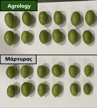 Εικόνα 4. Δείγμα καρπών του προγράμματος Agrology (επάνω) και του Μάρτυρα (κάτω).​