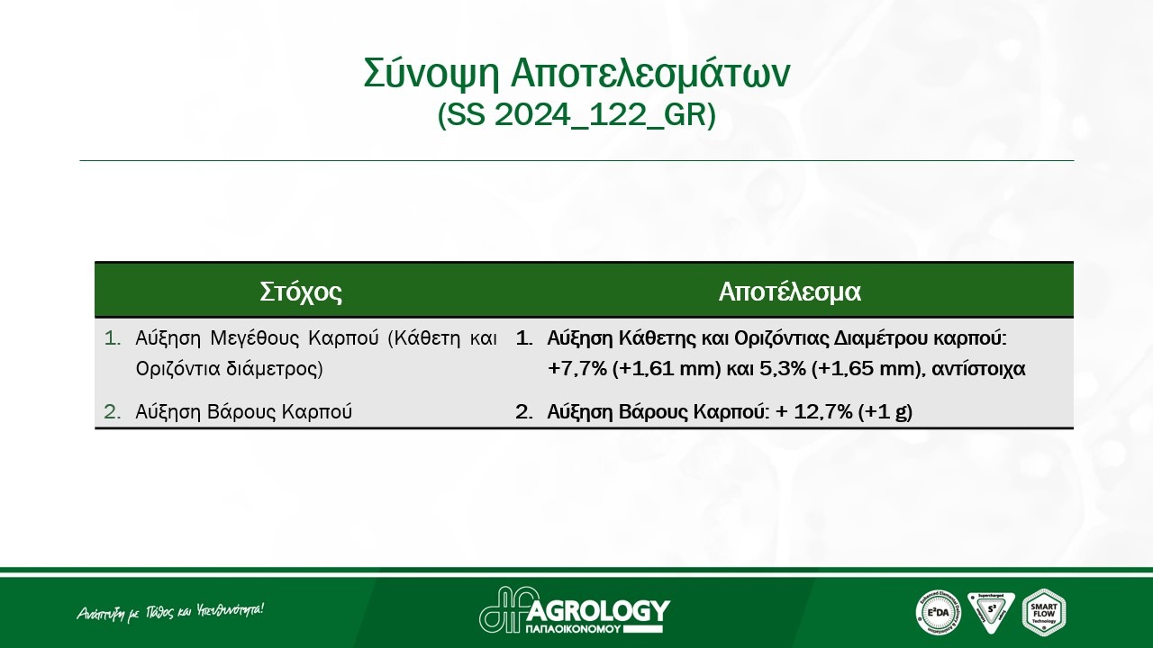 Αύξηση Μέσου Βάρους Καρπού: +12,7% (+1 g) ​