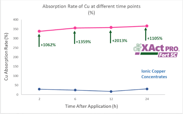 Agrology’s XAct® PRO Fort SC product is a nanotechnology formulation of Nano-Cu & Nano-Zn particles enhanced with Boron (B) and Molybdenum (Mo), and further activated with E2DA® Technology.